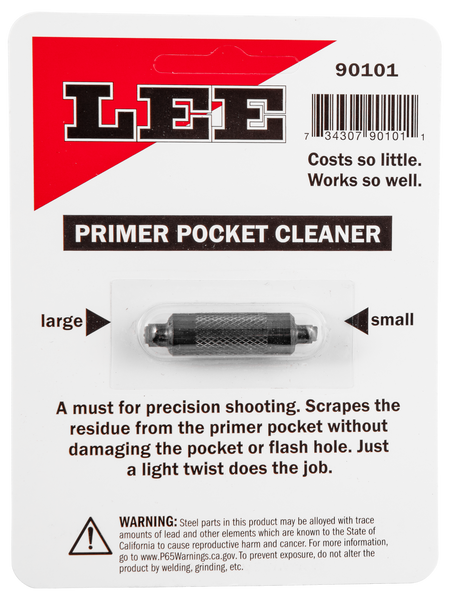 Lee primer pocket cleaners double ended design cleans both large and small primer pockets so that primers can be fully seated for better accuracy and safety.*will not work on the 204 ruger or 50 bmg brass.
