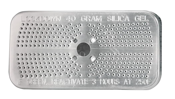 Lockdown silica absorbs moisture from the air inside a vault or storage area preventing condensation, mildew and rust from damaging valuable firearms.Crystals change color once fully saturated and can be easily recharged in the oven.