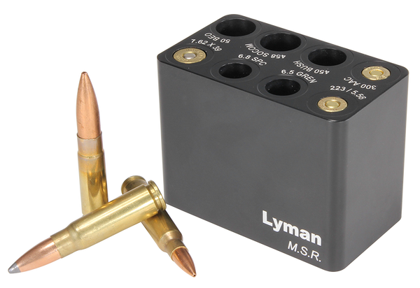 Lyman msr ammo checkers are machined from solid blocks of aluminum and cut with custom tooling to minimum chamber dimensions.Check the quality and consistency of both loaded rounds and purchased ammo.Covers 223/5.56, 6.5 grendel, 6.8 rem.Spc, 7.62x39, 300aac blackout, 450 bushmaster, 458 socom and 50 beowulf.Type: Ammo CheckerCaliber: MultiMaterial: AluminumFinish: BlackView more