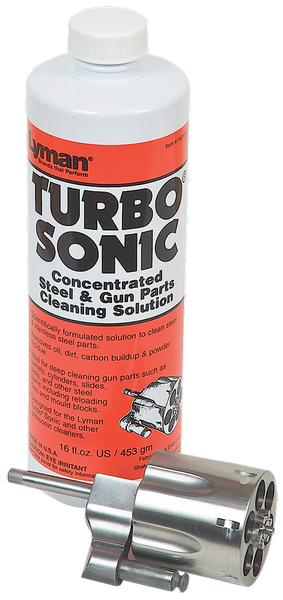 Lyman's specially formulated turbo sonic gun parts cleaning solution is the perfect choice for steel and stainless steel parts such as barrels, cylinders or other parts.