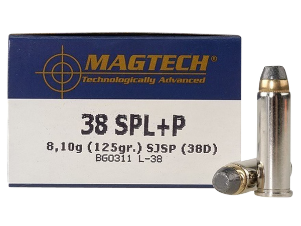 Manufactured to the highest standards for consistent quality and exceptional performance.More shooters rely on magtech than any other.Rating: +PCaliber: 38 SpecialBullet Type: Semi-Jacketed Soft Point FlatBullet Weight: 125 grMuzzle Energy: 244 ft lbsMuzzle Velocity: 938 fpsRounds Per Box: 50Boxes Per Case: 20Application: Target ShootingCasing Material: BrassHazair: YesView more