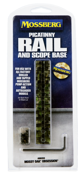 This mossberg mount equips your firearm with the ability to mount accessories, optics, and lights with this picatinny/scope mount.Fits drilled and tapped shotguns.Length: 6.5"Type: Picatinny RailModel: Picatinny Rail/Scope MountStyle: PicatinnyMisc: StandardFinish: Mossy Oak ObsessionMaterial: AluminumPieces: 1Gun Type: ShotgunMount Type: To ReceiverRings Included: NoView more