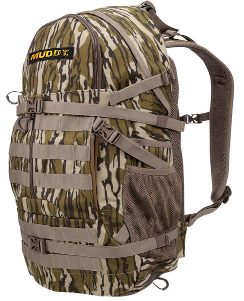 Pro 1300 hunting pack is made of 100% poly brushed quiet (yet durable)material.Main compartment is complemented by zippered front pockets.Fabric and mesh side pockets.Molle attachments on front.Camo is in original mossy oak bottomlands with side mesh pockets.