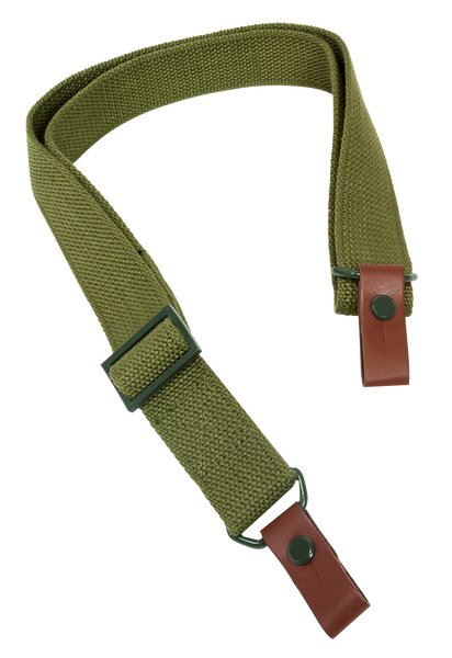 This sling is made of a thick canvas and attaches to ak and sks type rifles.It's adjustable for length with metal slider, all metal hardware for durability, and double-stitch and reinforced sewn ends.