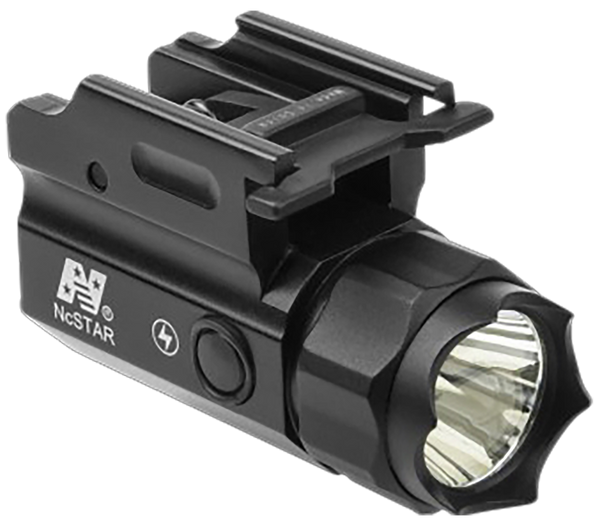 The led compact flashlight qr w/strobe will disorientate your target and extend battery life.Quick release mount that will fit most weaver/picatinny type rails found on most mid size and compact semi-automatic pistols (not sub-compact and pocket pistols).Push button rubber switch on the left side of flashlight and a push button rubber strobe button on the right side of the flashlight.Uses 1 cr2 lithium type battery.
