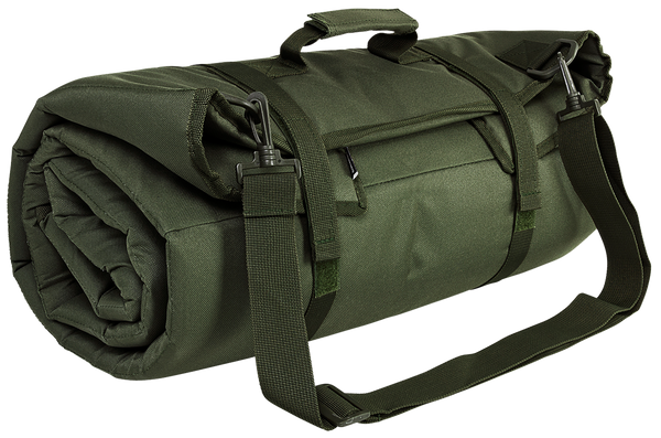 Ncstar's shooting mat can be used for multiple purposes.Made with a water and chemical resistant pvc material, the adjustable shoulder strap serves double duty to help secure your firearm's bipod while the slip resistant panels helps keep your elbows and knees from losing traction.The.30" of padding makes shooting from the prone position on the ground more comfortable.Unrolled it measures 69"l x 35" and rolls up into a compact size of 19.5"w x 8.5"h with two hook and loop straps to secure it.This model has a green finish.
