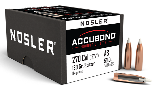Accubond is designed to be a highly-accurate big game hunting bullet suitable for use on a wide variety of game.Its bonding process eliminates voids in the bullet core, and accubond marries nosler's traditional copper-alloy jacket with its special lead-alloy core.The result is a bullet that flies true, penetrates deep and retains its weight and won't cause extensive barrel fouling.The unique white polymer tip resists deforming and initiates expansion on impact.Nosler's solid base at the rear of the bullet acts as a platform for large diameter mushrooms.Boat tail configuration combines with the streamlined polymer tip for long-range performance and for easier loading.