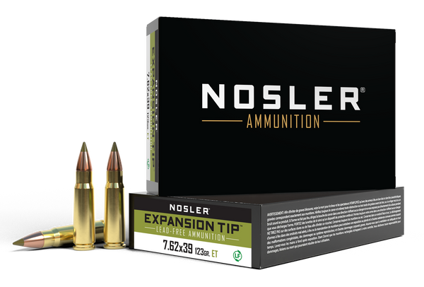 Nosler e-tip, lead-free, ammunition is loaded up front with the high-performance, lead-free, e-tip hunting bullet.The e-tip bullet combines uniform expansion with 95%+ weight retention for superior penetration and excellent terminal performance on all types of big game.