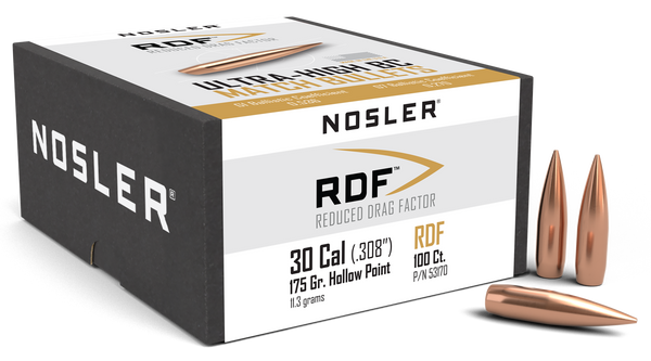 For those wanting to squeeze the most performance from their competition rifle, nosler's rdf (reduced drag factor) match bullet line is the ideal choice.The rdf line was designed from the ground up to provide exceptionally high bcs, which create the flattest trajectory and least wind drift possible.The keys to the rdf's outstanding performance are nosler's meticulously optimized compound ogive and long, drag-reducing boattail, which make handloading a snap and create an incredibly sleek form factor.Rdf bullets also have the smallest, most consistent meplats of any hollow point match bullet line, so there is no need to point or trim tips.