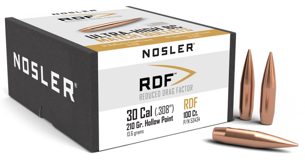 For those wanting to squeeze the most performance from their competition rifle, nosler's rdf (reduced drag factor) match bullet line is the ideal choice.The rdf line was designed from the ground up to provide exceptionally high bcs, which create the flattest trajectory and least wind drift possible.The keys to the rdf's outstanding performance are nosler's meticulously optimized compound ogive and long, drag-reducing boattail, which make handloading a snap and create an incredibly sleek form factor.Rdf bullets also have the smallest, most consistent meplats of any hollow point match bullet line, so there is no need to point or trim tips.