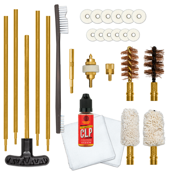 Everyones got a trusty shotgun or two (or three or four).Get the multi-gauge shotgun cleaning kit from otis and you'll have your 12 & 20 gauge shotguns cleaned and maintained in no time.This kit includes everything you need for quality shotgun maintenance, featuring solid brass rod sections.Bristle Type: BronzeTip Features: Pierce PointCase Material: Plastic BoxView more