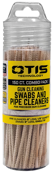 Stock up on gun cleaning essentials with this combo pack of gun cleaning swabs and pipe cleaners.Each pack comes with 100 swabs and 50 pipe cleaners.The gun cleaning swabs feature a thick, absorbent cotton swab on a strong 6 wooden handle.Excellent for precision cleaning and detail work.The 6 long and 1/8 diameter pipe cleaners are composed of a flexible wire core and absorbent cotton bristles.Perfect for cleaning gas tubes and other hard to reach areas of your firearm.Also recommended for arts & crafts, hobbies and projects requiring detail work.