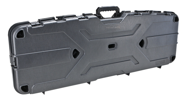 Essentially two cases molded back to back.Holds one scoped rifle per side.Patented pillarlock protects firearms.Comfortable carry handle.Heavy duty latches.Lockable/airline approved.53.32" x 6.13" x 12.38".Type: Double Gun CaseColor: BlackDimensions: 53.32" x 6.13" x 12.38"Material: PolymerFinish: ContouredAirline Approved: YesHardware: LatchesLockable: YesPadding: FoamCrushproof: YesGuns Held: 2View more