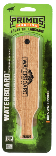 If you need to make a gobbler talk, rain or shine, the primos waterboard is your call.With each side producing different tones, you can replicate the sounds of multiple hens cuts, clucks, purrs, or yelps.The mahogany box and canary paddle is a great combination for great calls.Works wet or dry.Type: Box CallSpecies: TurkeysMaterial: MahoganySound Species: Turkey HenColor: NaturalStyle: HandProofs: WaterproofSounds: Clucks/Cuts/Purrs/YelpsView more