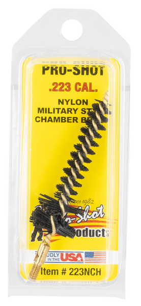 The military style chamber brush features heavy duty stiff nylon bristles with brass core and coupling that is wound through the brush coupling for added strength and durability.