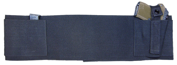 The concealed carry belly band is a waist wrap with a holster on one side and extra magazine pockets on the other.It is made of heavy-duty elastic with a secure, velcro closure.