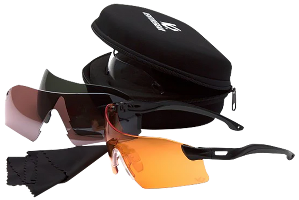 Interchangeable frameless safety glass kit.Includes 4 h2x anti-fog lenses options.Neoprene storage case included.Microfiber cleaning cloth.Passes mil-prf 32432 high velocity impact standard.
