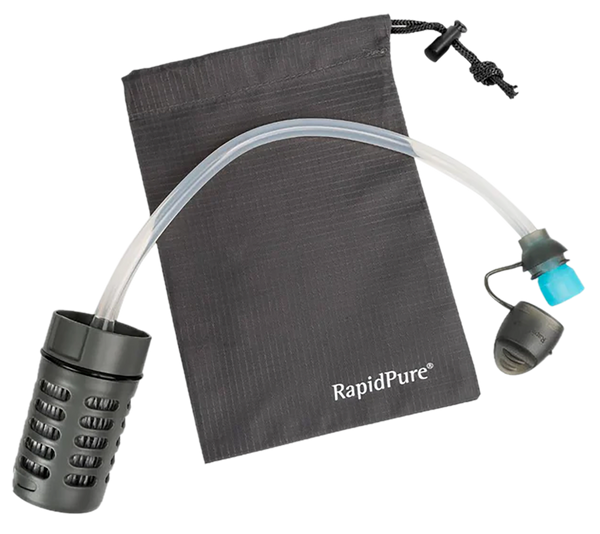 The rapidpure purifier + ultralight straw provides fast, effective water purification in a pocket-sized straw.Weighing in at less than 3 oz, this straw filter and purifies using a new pod platform with ultraceram and openpore technology for 99.99% protection against viruses, bacteria, parasites, and more.It includes a replaceable filter cartridge and pod, a travel pouch and an ultralight straw with a bite valve cover.