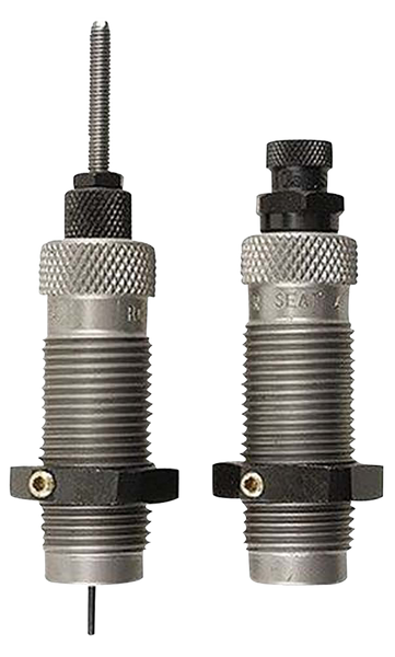 This two-die set is intended for reloading bottleneck cases, and consists of a full-length sizer die with an expander-decapping unit, and a seater die with bullet seater plug.The full-length sizer die brings the case to saami minimum cartridge dimensions.It sizes the outside of the case, de-primes and expands the neck to accept the bullet.The die has vents to prevent case damage caused by trapped air and for excessive lubricant.Headspace is held to minimum tolerances to avoid changing the case body length during full length sizing.The included seater die has a built-in roll crimper to secure the bullet at the same time as it's seated.