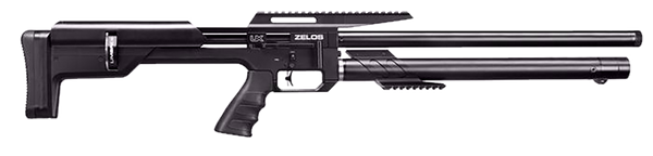 The zelos is a bullpup pcp that stuffs 26 inches of barrel into a compact 36 inch package.The natural result of such a long barrel length is power and accuracy with the added convenience of a very easy handling bullpup platform.The zelos in.25 caliber utilizes a 18 round auto-indexing rotary magazine and features an on-board tank that fills to a maximum pressure of 3625 psi.This 250cc tank is free-floated from the barrel and fitted with an 8-slot picatinny accessory rail.Zero in your favorite optic on the 21-slot top picatinny rail and start sending pellets downrange with precision.