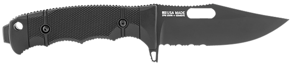 The latest addition in our line of seal fixed blade knives, seal fx is built with extensive feedback from professional users.This partially serrated version is still american-made, with s35vn steel and a tough, glass-reinforced nylon handle.Including a customizable kydex sheath, seal fx is the professional's go-to solution for fixed blades.Includes sheath.