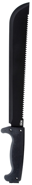 Equipped with saw on the back of the blade, sogfari machetes are built from stainless steel and textured handles fit for outdoor work.There are even holes in the handle to mount lanyards.