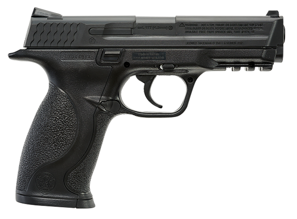This bb gun is a replica pistol based on the s&w m&p (military and police) firearm.Powered by one 12g co2 cylinder, this bb repeater has an integrated accessory rail under the muzzle and drop out magazine that holds 19 steel air gun bbs.The m&p bb pistol also features a manual safety, double action trigger, and fixed front and rear fiber optic sights.