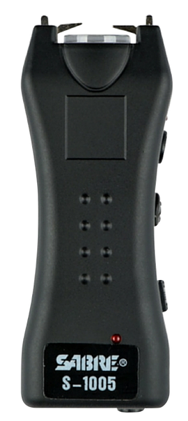 The sabre stun gun includes a wrist strap, holster and a 120 lumen led flashlight.