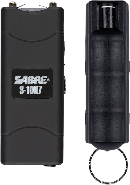 Sabre multi-range protection pack contains police strength 25 burst pepper spray and a stun gun.Rechargeable stun gun delivers 0.704 charge, push button operation for flashlight and safety switch; flashlight 120 lumens; pepper spray has key case with twist lock trigger to prevent accidental discharge.Includes belt holster.