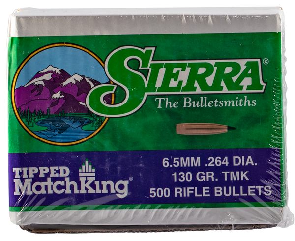 Sierra has enhanced a segment of the matchking line by adding the acetal resin tip, thus crowning the tipped matchking bullet line.The major advantage of adding a tip to the bullet is the reduction of drag, producing a more favorable ballistic coefficient.Specifications:264 cal.264 130 gr tipped matchking 500 per box