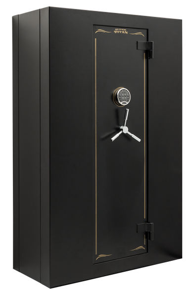 All the security of a conventional, welded safe in an easy-to-assemble gun vault that moves anywhere piece-by-piece, then locks together in minutes with no tools.Every super titan ships with one full shelf and full gun rack plus a half gun rack with 2 half shelves, so you can configure your vault to meet your needs.The super titan features a 15 slot full gun rack.The recommended capacity is 24 long guns when stored in sleeves with the muzzles up and down, less if your guns have optics.