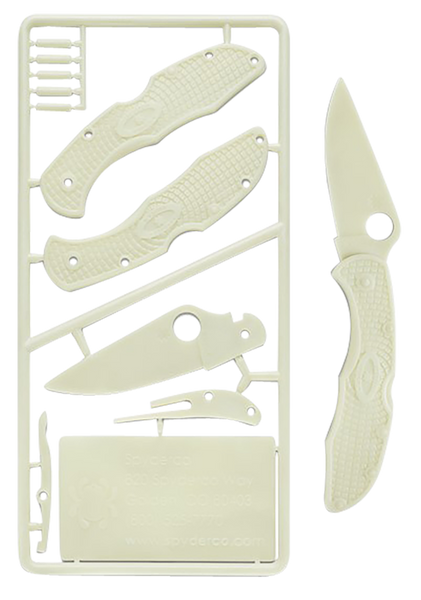 Teach your kids about knives the safe way.The all-plastic kit is a reproduction of spyderco's delica 4 folding knife.Designed for ages 7 and older, it can be assembled in minutes without tools or glue and yields a completely safe working model of a delica 4.Precision molded from glow-in-the-dark plastic, all parts are rounded for safety and designed so the knife can be assembled and disassembled numerous times.The perfect tool for teaching youngsters about safe knife handling and the inner workings of a back lock folder.