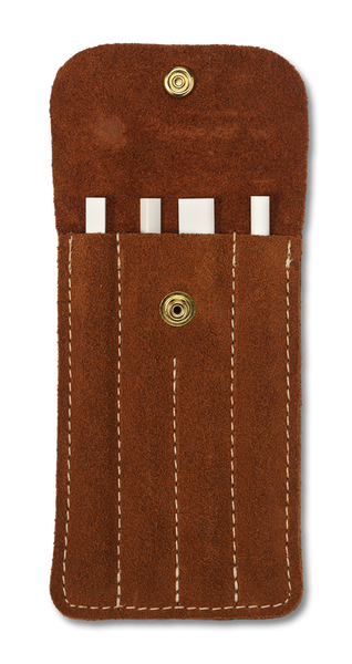 Spyderco's ceramic file set includes four ceramic files: round, square, triangular and slip (teardrop).All four stones are fine-grit, ready for deburring hardened molds, even carbide.Clean with a plastic souring pad and powdered abrasive cleanser.Includes leather case.