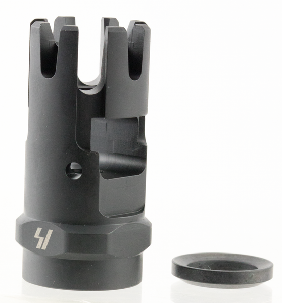 Strike's checkmate comp is a multifunctional muzzle device and is designed with a series of four off-set serrated angled prongs.The top port is set to the right, while the aggressive front makes sure no one gets too close.It is constructed of parkerized steel.