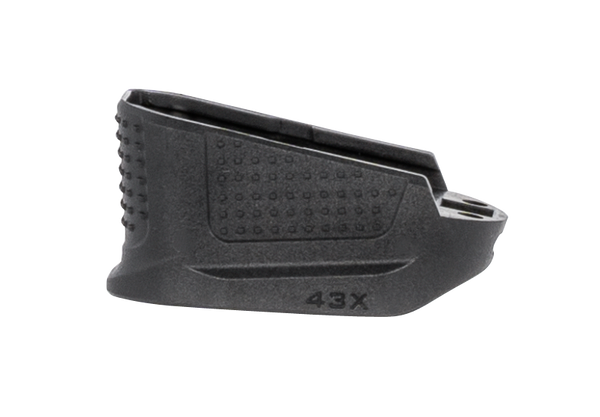 The strike industries g43x extended magazine plate (g43x emp) design provides smoother magazine reloading through its low drag / no snag design.The g43x emp provides multiple functions, primarily an additional 2 rounds bringing the g43x capacity up to 12 (10 round double stack + 2 with emp).