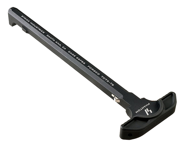 Simple in its execution, yet robust and reliable, the revolutionary strike latchless charging handle offers forged 7075 construction, efficient side gas venting, and a solid, comfortable interface for the user.Reliable receiver lockup is achieved through a novel hidden spring mechanism that uses the charging handle insertion slot in the upper receiver charging handle channel.This channel features a natural radius that will not wear rapidly like the external, 90-degree edge of the standard ch latch area of the upper receiver.The flat spring bearing surface is much larger than a steel ball bearing, spreading force and wear out over a larger area.Increased service life is one benefit of this type of system, as is the comfort and peace of mind that come from a lack of moving or external components that can break or snag/catch on your gear and foreign objects.The solid aluminum construction is durable and provides a solid mounting point for the iso tabs, an add-on component that increases surface area for those using large optics and/or gloved hands.Note: for standard mil-spec ar15 rifles only.Not rated for suppressors and/or full auto fire.Not for use on sbrs or pistol length barrels (<14.5").This model has a black finish.