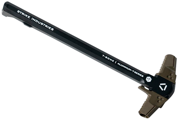 The strike industries t-bone charging handle for.223/5.56 ar-15's feature a patented gas redirect system that allows you to configure the gas to exit only left, only right or evenly to both sides.The shaft of the charging handle is machined from 7000 series aluminum which excels in applications requiring lightweight and high strength.However, with comfort and control in mind, the t-bone latchless handles are made from si polyflex polymer.The strike industries t-bone charging handle for.223/5.56 gives you a modular way to direct the gas and setup the feel and look for one of the most overlooked and essential part of your ar upper receiver.