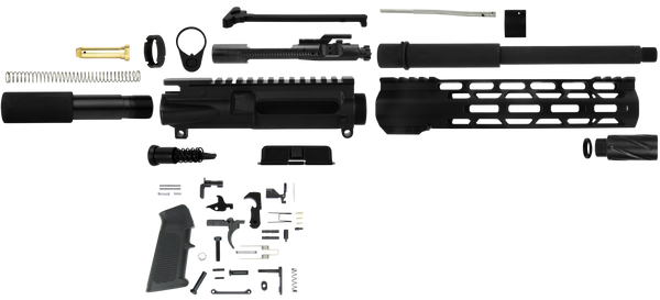 The tacfire pistol kit contains-.300 aac blackout 10.5" barrel/parkerized;.308 spiral fluted flash can w/crush washer; ar15/.750 micro/low profile gas block/mil-spec/steel; pistol length gas tube w/pin/steel; ultra slim 7" clamp on mlok free float handguard; ar15 5.56/.223/.300aac stripped billet upper receiver w/m4 feed ramps; ar15 5.56 nato bolt carrier group/mpi tested/nitride; ar15/.556 mil-spec charging handle aluminum w/steel latch; dust cover; ar15 forward assist, ar15 standard receiver...View more
