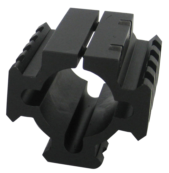 The tacstar shotgun rail mount is designed to fit standard 1" diameter magazine extensions and allows for mounting of tactical lights and/or lasers.The mount has three standard picatinny rails positioned 90 degrees apart which allows for plenty of options when mounting accessories to the shotgun.It uses an easy to install clamping system which will not mar extensions, yet is strong and secure.