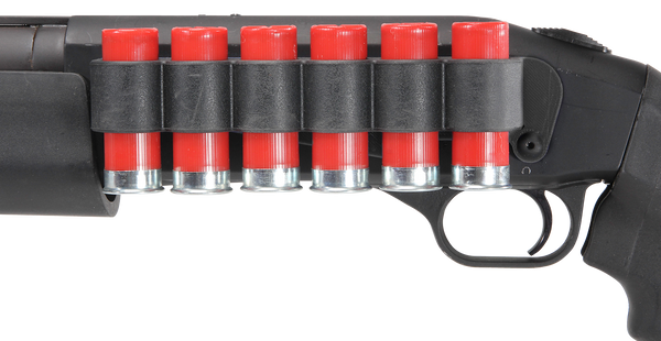Tacstar's shotgun rail mount with sidesaddle is ultra-rigid, lightweight and straddles both sides of the receiver.It is constructed of aluminum with a non-glare anodized finish.The top picatinny rail can mount a variety of accessories, yet is designed to sit just high enough to allow continued use of the shotgun's bead sight.Keeping six shells in readiness, the low profile design sidesaddle incorporates tacstar's proprietary material for durability and secure shell retention.