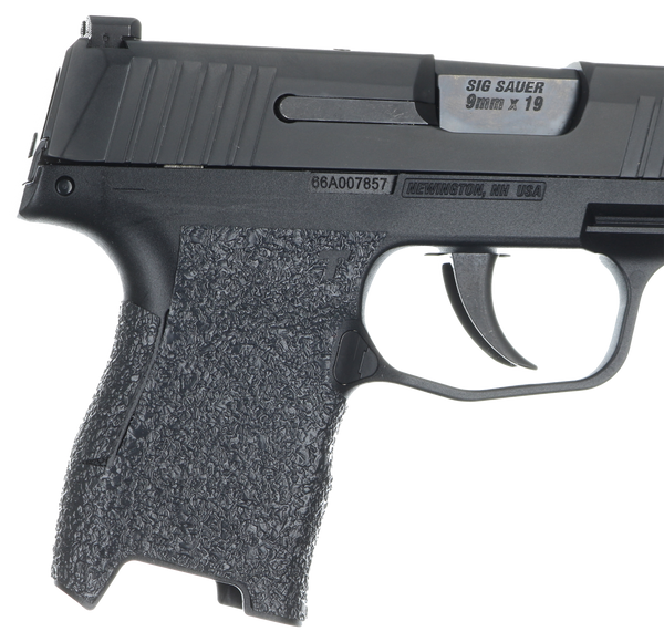 The low profile grip is custom designed and manufactured for specific firearms.This rear wrap grip is constructed of a textured rubber, and offers full side panel coverage including the thumb rest, trigger guard, and high coverage on the backstrap.Made in the usa.Compatible with sigsauer p250/p320 compact pistols with medium grip module.It has a graphic cutout for the sig sauer emblem and a black finish.Included is a cleaning pad.