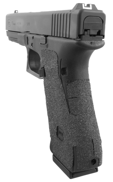 The talon low profile grip is custom designed and manufactured for specific firearms to provide an oem quality fit and finish, adding minimal bulk/size.Adhesive will not move once properly installed and can be easily removed with little to no residue.It is easy to install within minutes (proper installation requires a hair dryer or heat gun).The rubber texture provides positive grip on the firearm and is more commonly used for concealed carry (less likely to irritate skin or snag on clothing) and users with softer hands.This grip provides full coverage on the side panels including above the thumb rest, ample coverage on the backstrap, and three finger wraps for the finger grooves under the trigger guard.This grip has a logo cutout for the glock emblem on the left side of the handle.This grip sticks extremely well even with the rough textured frame (rtf).Compatible with glock 17/22/24/31/34/35/37 gen4 with no backstrap.