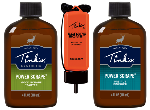 Tinks power scrape all-season kit is a necessity each fall.The all-season kit will influence travel pattern and persuade bucks to consistently return to a scrape.With the addition of the scrape bomb you are provided with an all-in-one convenient dispersal system to use on both natural or mock scrapes.Tinks value pack: this tinks value power pack comes with all of the hunting accessories necessary for each...View more