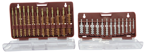 Combining the ultra jags and best bore brushes into one convenient 26-piece set gives the ultimate storage system for brushes and jags.Neatly organized in a durable, hinged box with marked cavities, it's easy to select the correct jag and brush for your particular application.Because they are caliber-specific, you can be assured of an optimum fit to your firearm's bore for efficient and thorough cleaning.All jags and brushes have 8-32 threads.*does not include 20 caliber; 17 and 20 caliber has 5-40 threads and is a standard bore brush.