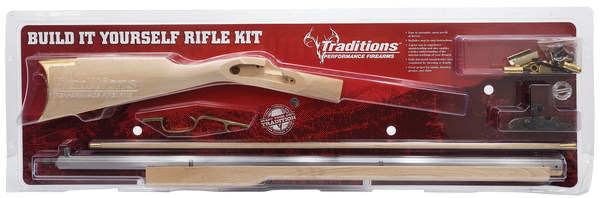 The kentucky rifle kit features a 33.50" percussion, octagon barrel with a fixed tang; brass trigger and fixed/blade sights.