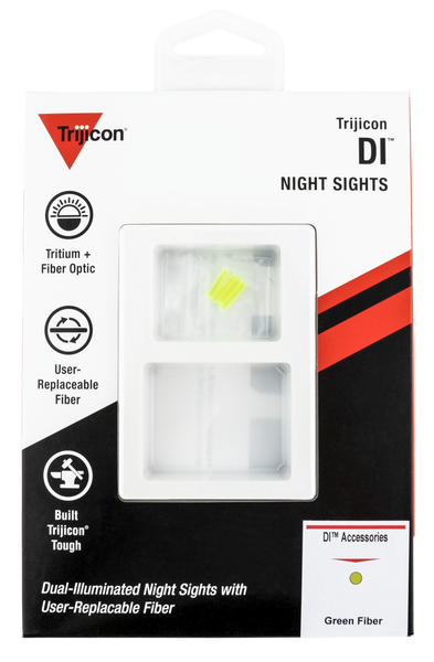 Trijicon di night sights feature a chemical and heat resistant fiber, finished with the same proprietary technique as the trijicon acog, coupled with a tritium lamp capped with a sapphire jewel.This dual-illumination technology amplifies collected light, ensuring an ultra-bright aiming point in any light from daylight-bright to low-light to complete darkness.