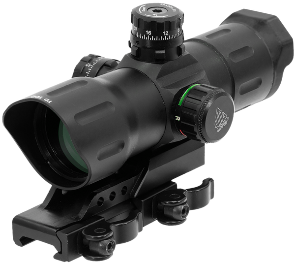 The utg 6" ita dot sight is a rugged and precision-engineered optic built on the true strength platform, ensuring durability and accurate adjustments.Designed for fast target acquisition, it features an unlimited eye relief and a red/green t-dot reticle for quick and intuitive aiming.With premium zero-lockable and zero-resettable turrets, it offers consistent 1/2 moa per click adjustments and excellent zero-holding capability.The 42mm center height provides a 1/3 co-witness with iron sights, while the tactedge angled sunshade minimizes glare for optimal clarity.Complete with lens covers and a qd dual-lever lock bidirectional offset mount, it maximizes rail space for magnifiers, rear sights, and other accessories.Built to withstand shocks, fog, and harsh weather, this sight is a reliable choice for precision and performance.