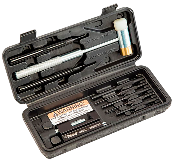 Complete kit for installing every ar roll pin without damaging or marring your firearm! kit includes: bolt catch install tool kit, ar trigger guard install tool, (3) starter punches and (3) driver punches, two sided hammer, and custom fit storage case.