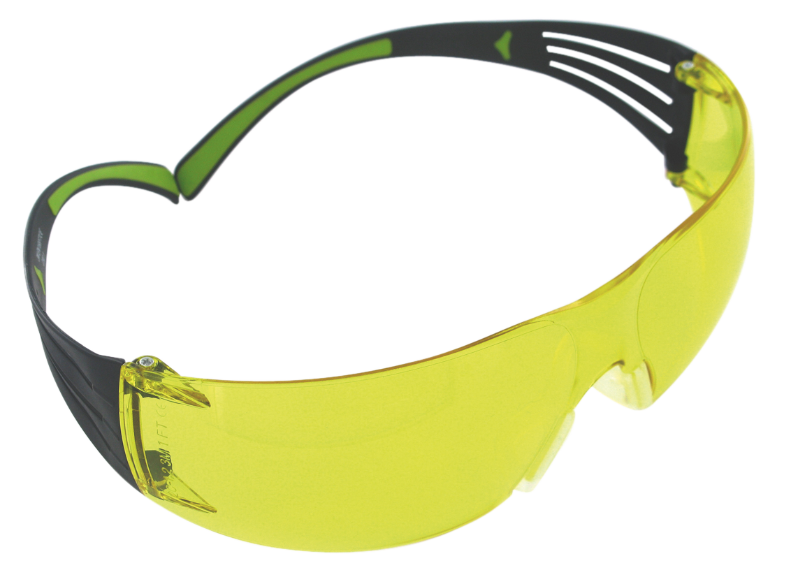 Securefit 400 protective eye wear is ideal for hunting/shooting sports done in different indoor/outdoor environments and lighting.Its low-profile, flexible temples are ideal for use with hearing protection.The contemporary, lightweight, wraparound lens design provides excellent coverage and good field of vision.They provide 99.9 percent uv protection and are polycarbonate with anti-fog coating.They have an ansi rating of z87.1-2010.The temple earpieces are black with green accent.This model has an amber lens which helps brighten up overcast days.