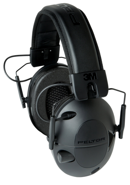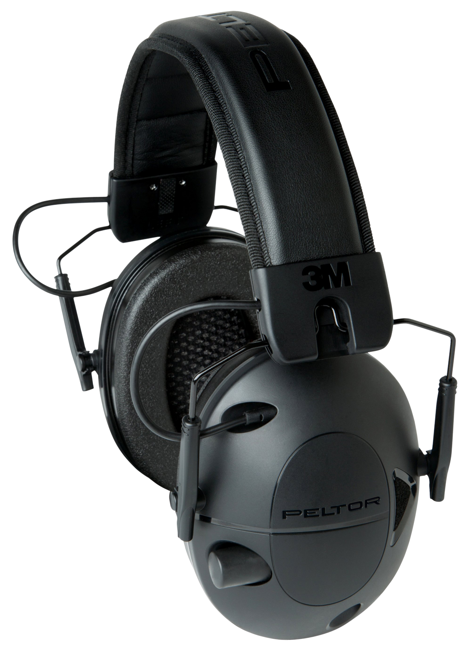 Peltor sport tactical electronic hearing protector earmuffs have low-profile cups for rifle/shotgun use to suppress gunshot noise and amplify low sounds using proprietary 3m technologies, and have an auto shut-off feature.The tactical 100 electronic hearing protector is ideal for both indoor and outdoor shooters and hunters with improved performance, enhanced comfort features, enhanced electronics, and greater functionality.Adaptive frequency response reduces background noise for clearer conversations and hearing of commands, and the variable suppression time feature provides optimal echo reduction in indoor shooting environments.These earmuffs offer a streamlined design including re-engineered headband for improved fit and comfort; tethered, easy-access battery door for (2) aaa batteries (not included); two-hour auto shut-off to conserve battery usage; 3.5 mm audio input jack compatible with most mp3 players and 2-way radios; and an improved 22 db nrr.